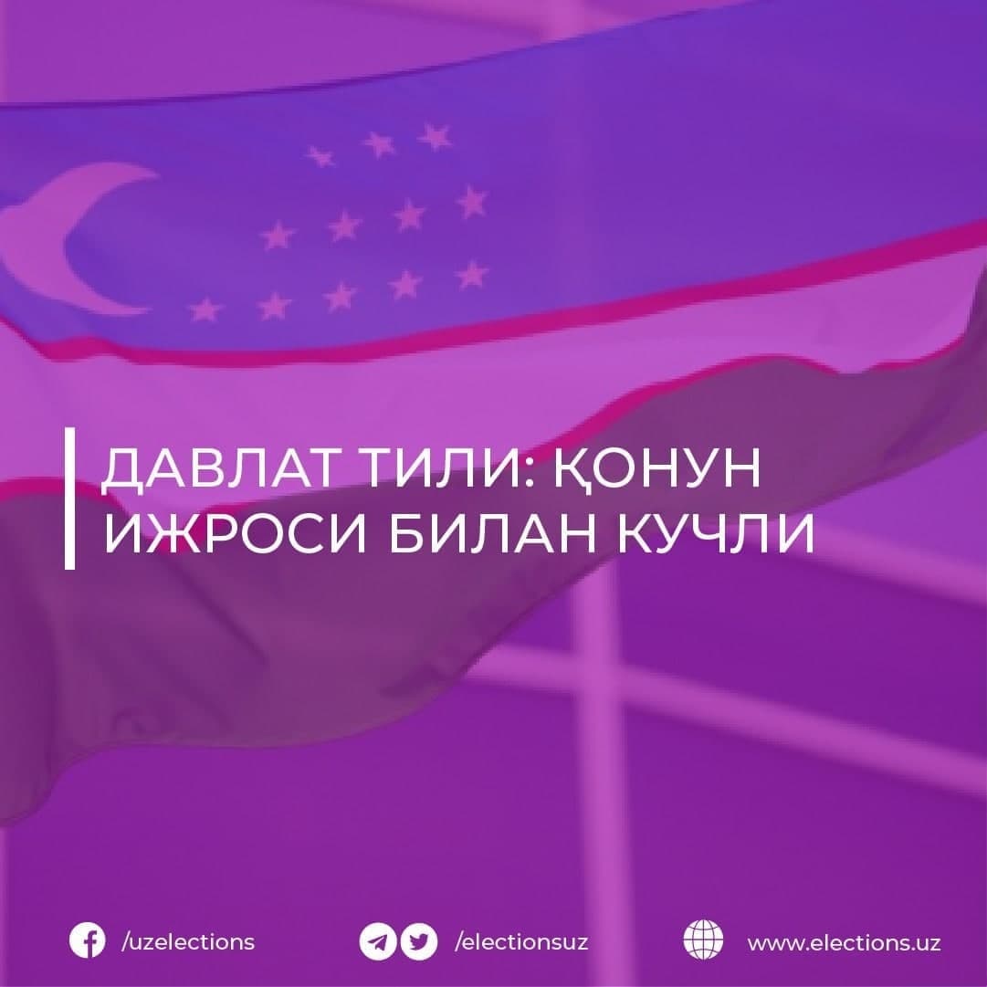 Turli millatlar vakillaridan iborat Markaziy saylov komissiyasi mehnat jamoasining deyarli barcha a’zolari davlat tilini pishiq-puxta biladi. Saylov komissiyasining barcha majlislari, matbuot anjumanlari, brifinglar, konferensiyalar, seminarlar ommaviy axborot vositalari vakillarining ishtirokida davlat tilida o‘tkaziladi. Normativ-huquqiy hujjatlar davlat tilida ishlab chiqiladi va qabul qilinadi. Milliy saylov tizimida davlat tilini joriy etish va rivojlantirishga qaratilayotgan e’tiborning yuksak samaralari 2019 yil 22 dekabr kuni mamlakatimiz parlamenti va mahalliy kengashlarga “Yangi O‘zbekiston, yangi saylovlar” shiori ostida o‘tkazilgan saylovlar jarayonida ham yorqin namoyon bo‘ldi.