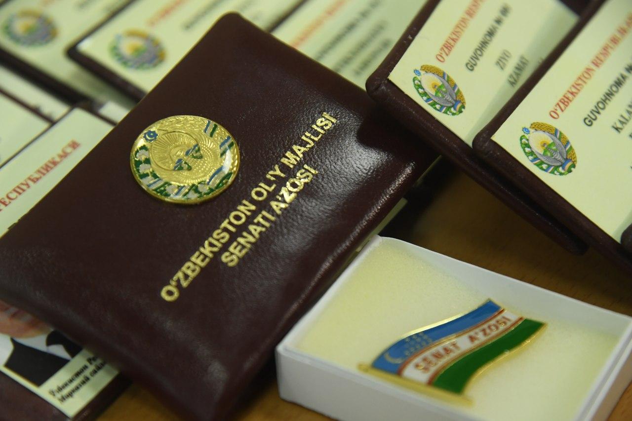 Депутатам Законодательной палаты и членам Сената Олий Мажлиса вручили нагрудные значки и удостоверения