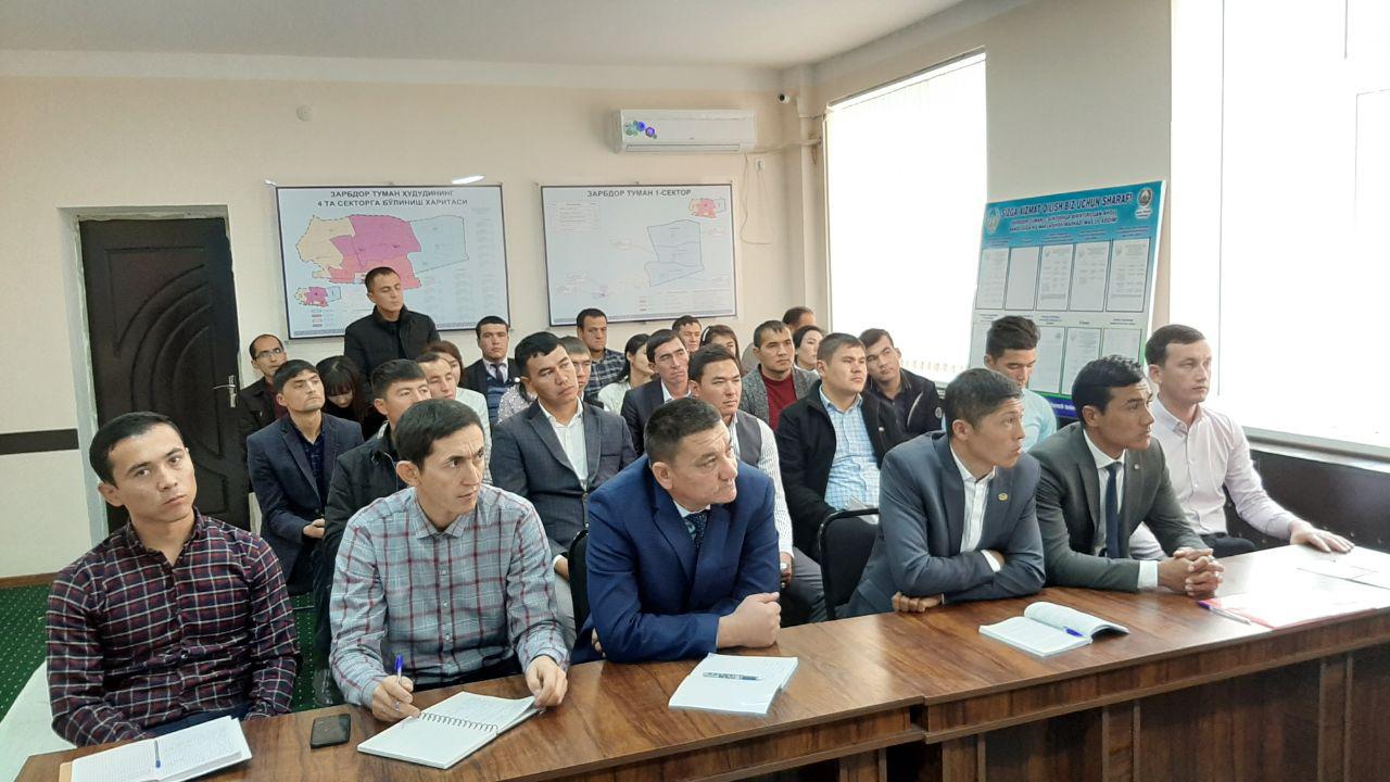 Тадбирда Ўзбекистон ёшлар иттифоқи Зарбдор туман Кенгаши раиси, Марказий сайлов комиссияси ўқув маркази директори, Зарбдор Қишлоқ ва сув хўжалиги касб ҳунар коллежида тумандаги мактаб, коллеж ва корхона ташкилотларда фаолият олиб бораётган бошланғич ташкилот ёшлар етакчилари иштирок этдилар.
