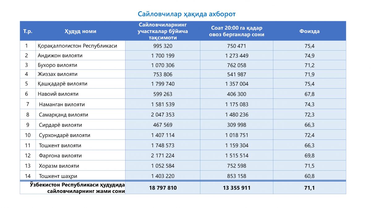Сайловчилар ҳақида маълумот (Янгиланди 21:00)