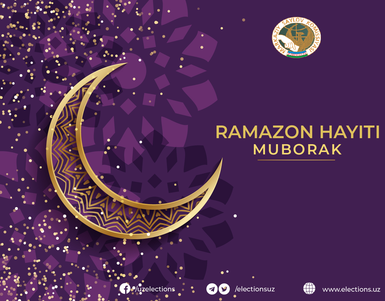 Ўзбекистон Республикаси Марказий сайлов комиссияси жамоаси мамлакатимиздаги ва хориждаги барча мўмин-мусулмонларни халқимизнинг эзгулик, хайру саховат ва меҳр-оқибат байрами - муборак Рамазон ҳайити билан самимий табриклайди.