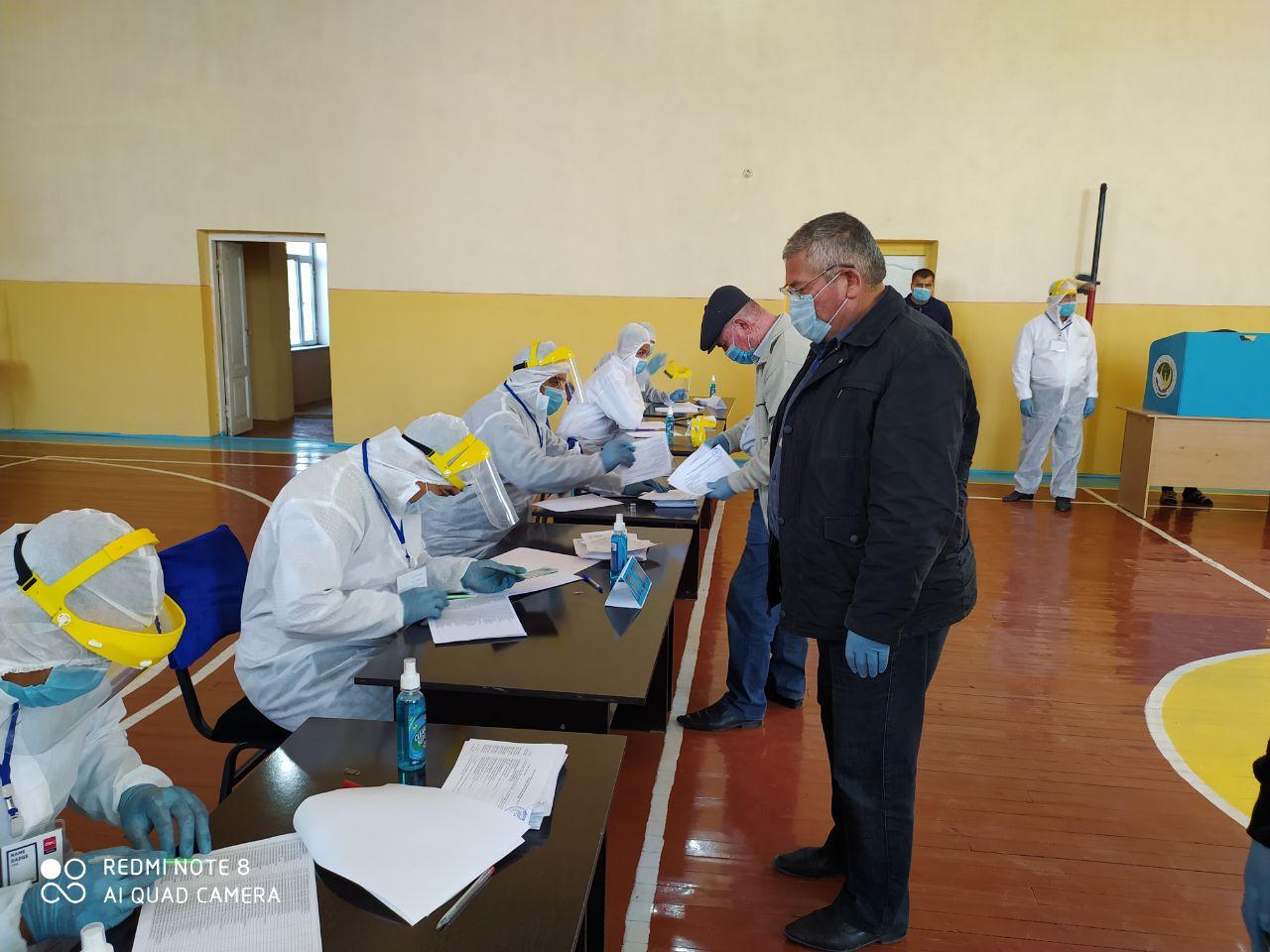 Маълумот ўрнида: Сайловлар пандемия шароитида карантин санитария қоидаларига катьий риоя қилган холда ўтказилмоқда. Хусусан, барча сайлов участкаларига тиббиёт ходимлари, жамоат тартибини ва хавфсизлигини сақлаш учун масьуллар бириктирилган.