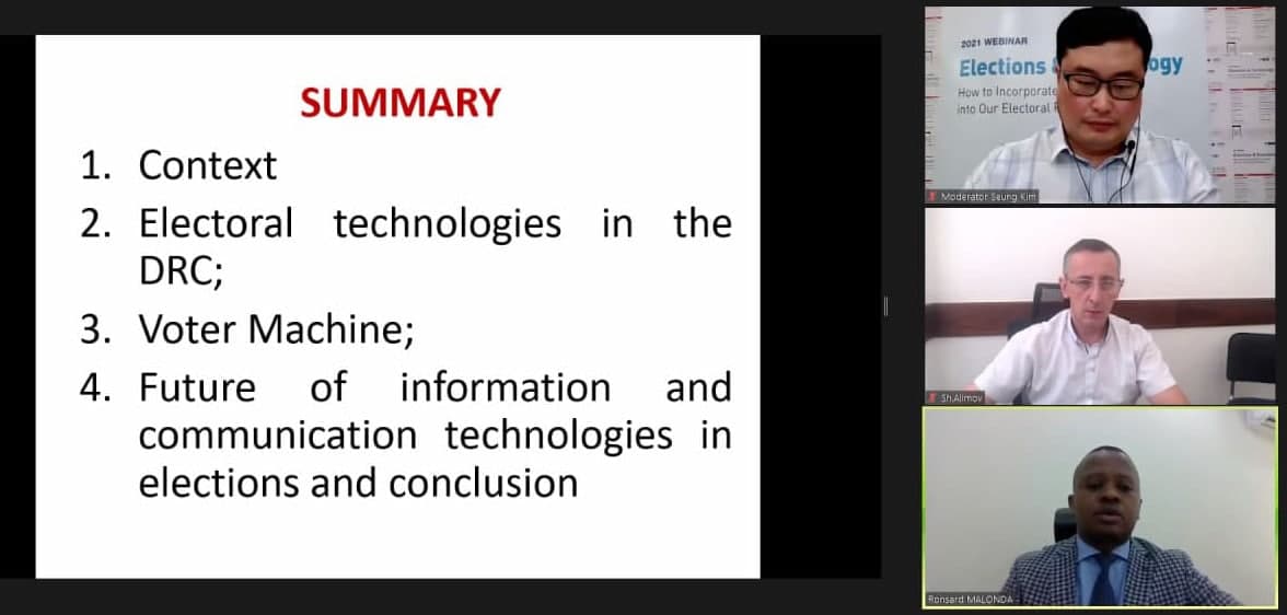 Вебинарда шунингдек, Ҳиндистон сайлов комиссияси раиси ўринбосари С.Джайн, Жанубий Африка Республикасининг биометрик сайловларни ташкил этиш бўйича эксперти А.Ланггут, Россиядаги “Касперский” компаниясининг бизнесни ривожлантириш бошқармаси директори Е.Барков, Россия Марказий сайлов Комиссияси аъзоси П.Андреев сингари етакчи мутахассисларнинг янги ва ривожланаётган технологияларни тўғри қўллаш, сайловчиларни рўйхатга олиш, электрон овоз бериш механизмларини такомиллаштириш, овозларни санаш ва натижаларни эълон қилишда хавфларни ўрганиш ва бартараф этишга бағишланган маърузалари тингланди.