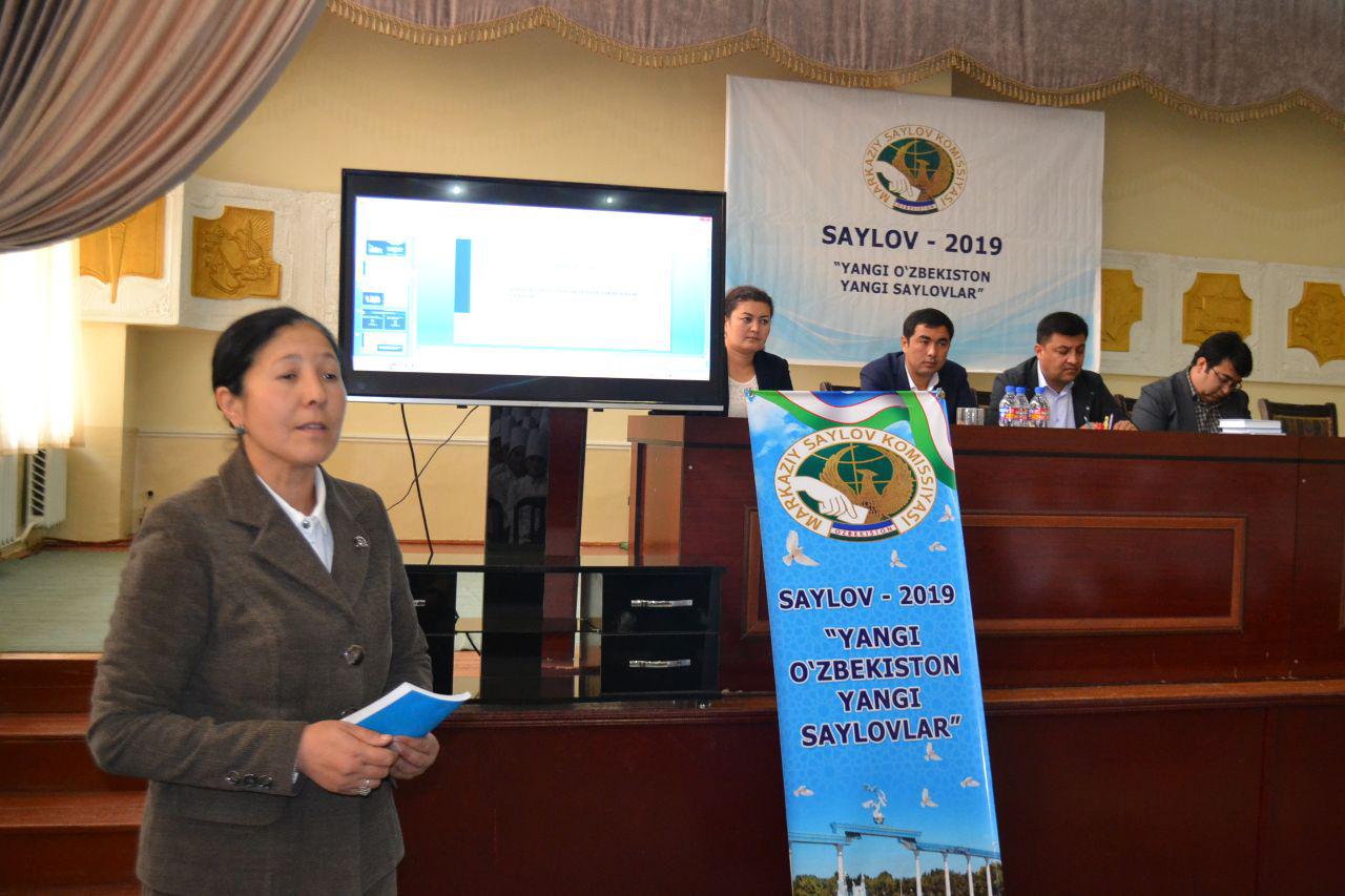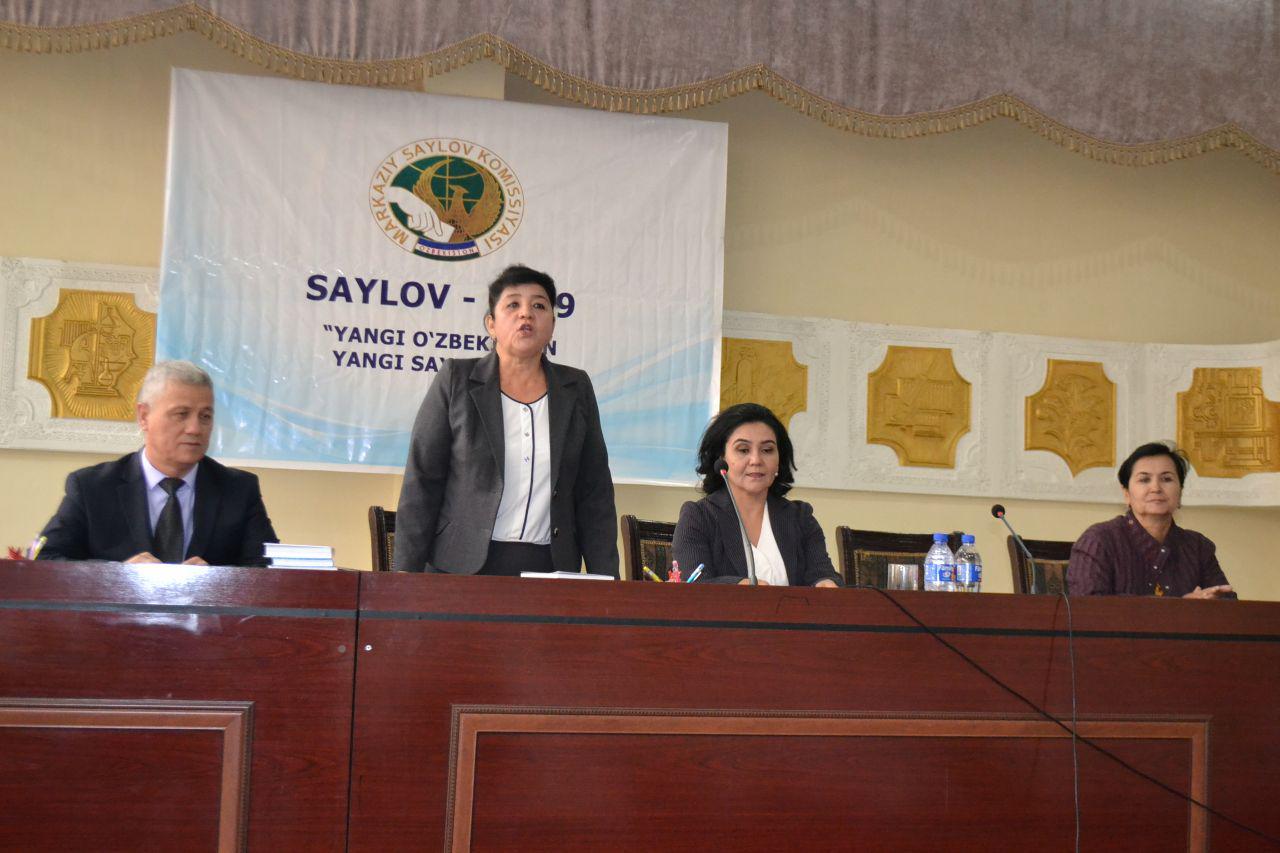 Марказий сайлов комиссияси аъзоси О.Қозихонова, вилоят сайлов комиссияси раиси Э.Нуралиев, вилоят сайлов комиссияси аъзоси М.Юлдашева, 110-округ сайлов комиссияси раиси Д.Шокировлар ёшларни қизиқтирган саволларга атрофича тўхталиб, сайлов жараёнида очиқлик ва ошкоралик принципларини мустаҳкамлаш мақсадида сайлов қонунчилигига киритилган ўзгартиришлар, шунингдек жамиятни янада янгилаш ва демократлаштириш фуқаролар сайлов ҳуқуқи амалга оширилиши билан узвий боғлиқлиги, айниқса бу борада ёшларнинг сайлов компаниясида фаол иштирокини таъминлаш муҳим аҳамиятга эга эканлигини алоҳида таъкидлаб ўтдилар.