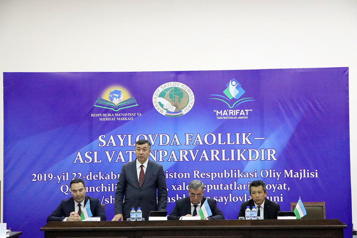 2019 йилнинг 1 ноябрь куни Тошкентда Республика Маънавият ва маърифат маркази ҳамда “Маърифат” тарғиботчилар жамияти, Ўзбекистон Республикаси Марказий сайлов комиссияси билан ҳамкорликда “Сайлов қонунчилиги тарғиботи ойлиги” доирасида “Сайловда фаоллик асл ватанпарварликдир” мавзуида семинар ўтказилди.